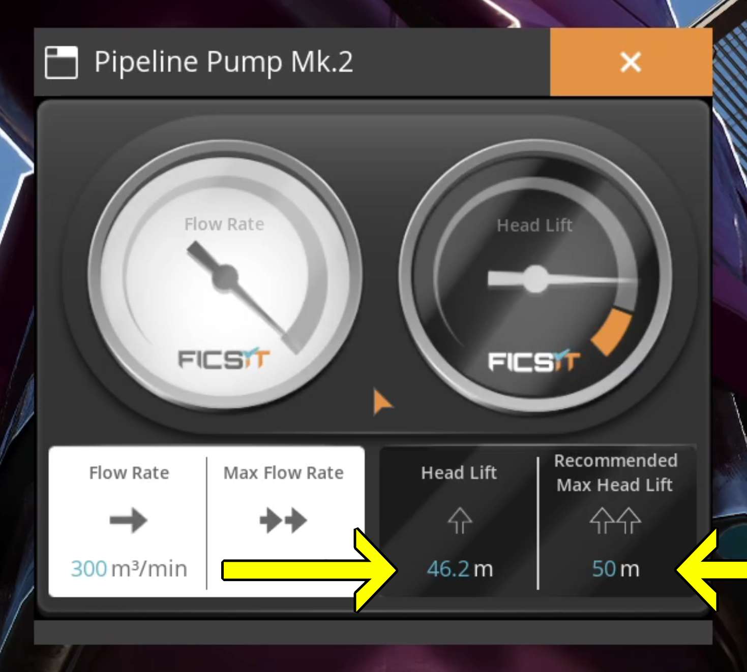 Water Extractors have a headlift limitation of 10 meters (m) vertically, which is measured from the centre point of it's pipe output. You can use 5 x 2m foundations stacked vertically to provide a visual guide of 10m. When you need to send water higher than 10m you will need to add a powered pipeline pump before the 10m limitation. A Mk.1 pipeline pump adds 20m of headlift and the Mk.2 adds 50m of headlift. Check the Satisfactory Guru website for more articles about fluid dynamics.